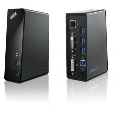 The ThinkPad USB 3.0 Dock provides a quick and easy connection to all the workspace peripherals you use every day. Simply plug in a single USB 3.0 cable into your Lenovo PC for instant access to up to two external monitors, Gigabit Ethernet, headphones/speakers, USB printers and scanners, keyboard, mouse, and up to 5 Gbit/s access to external storage (over 10 times faster than USB 2.0).