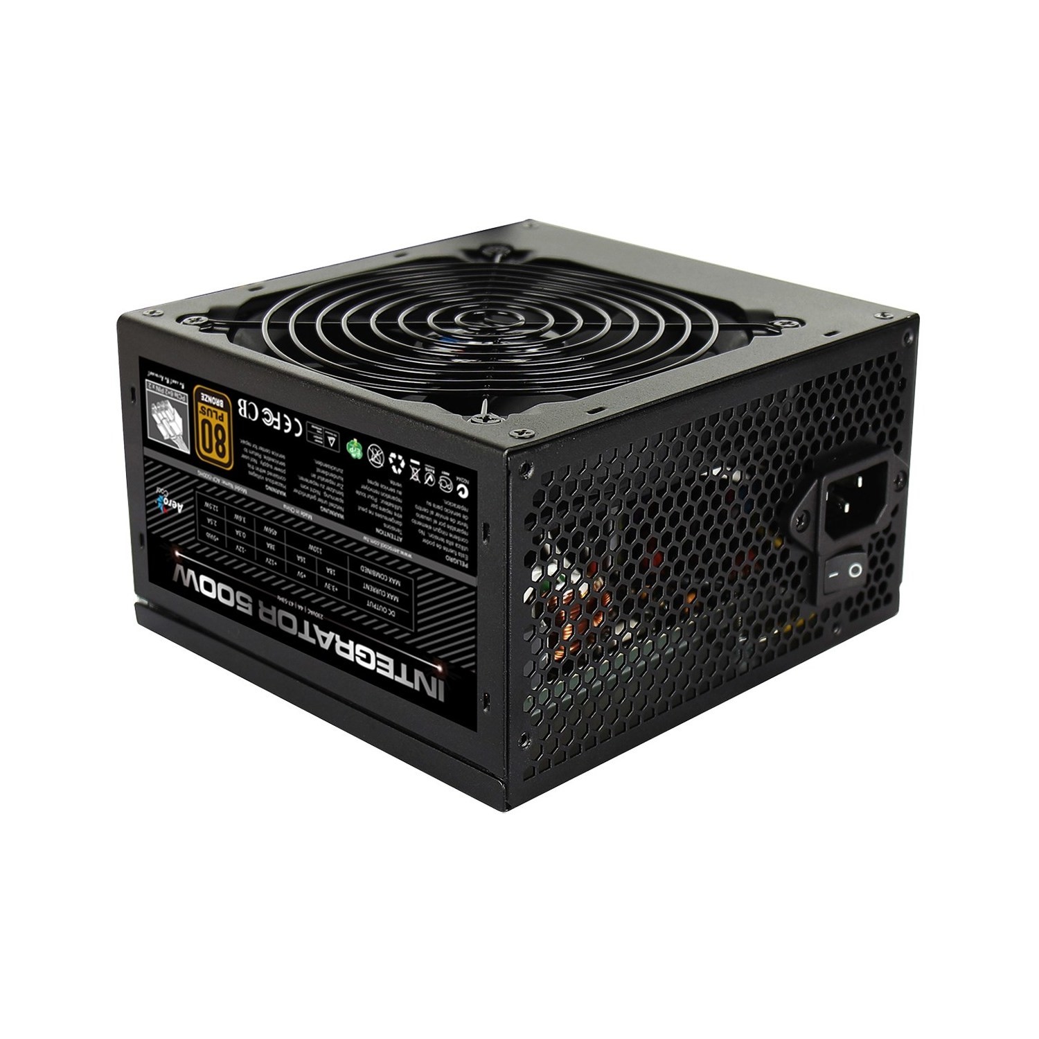Aerocool Integrator 500W 80+ Certified PSU 12cm Black Fan Active PFC TW Caps UK Cable