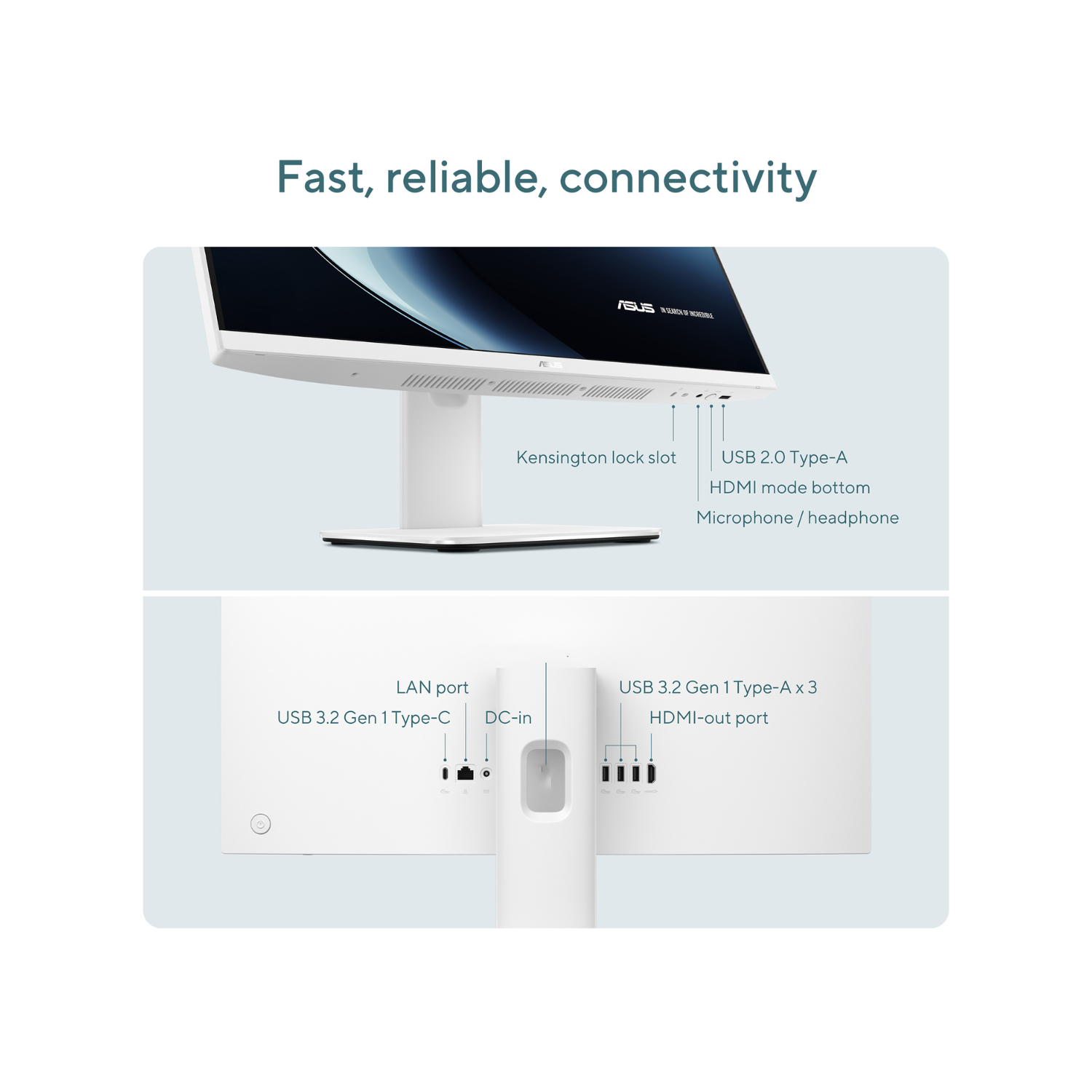 The ASUS V400 All-in-One PC combines power and elegance in a slim, space-saving form factor. Its 23.8-inch Full HD display offers crisp visuals and vibrant colors, making it perfect for both work and entertainment without the clutter of separate components.
