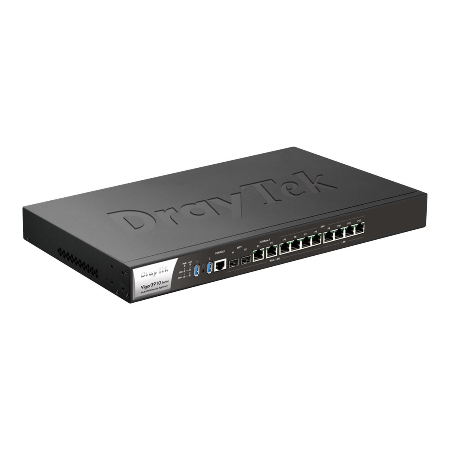 A feature central to DrayTek routers is its VPN (Virtual Private Networking) capabilities. A VPN enables you to link remote offices and branch offices back to HQ, or home-based/mobile teleworkers back to your office. Once connected, they have access to your office/remote resources through a secure encrypted tunnel allowing remote desktop, file sharing and seamless access to other resources and devices. The Vigor 3910 allows you to have up to 500 simultaneous VPN tunnels to remote offices or teleworkers, with over 3Gbps of VPN throughput. It supports all common industry standard protocols, encryption types and authentication methods (see specification tab for full support list). Teleworkers can authenticate directly with your LDAP server if preferred. The Vigor 3910 supports VPN trunking; this allows you to create tunnels down multiple WAN connections to a remote site in order to increase bandwidth. VPN trunking also provides failover (backup) of your VPN route down a secondary WAN connection.You can learn more about DrayTek VPN here. Teleworkers can also use 2FA (Two factor authentication) such as MOTP.