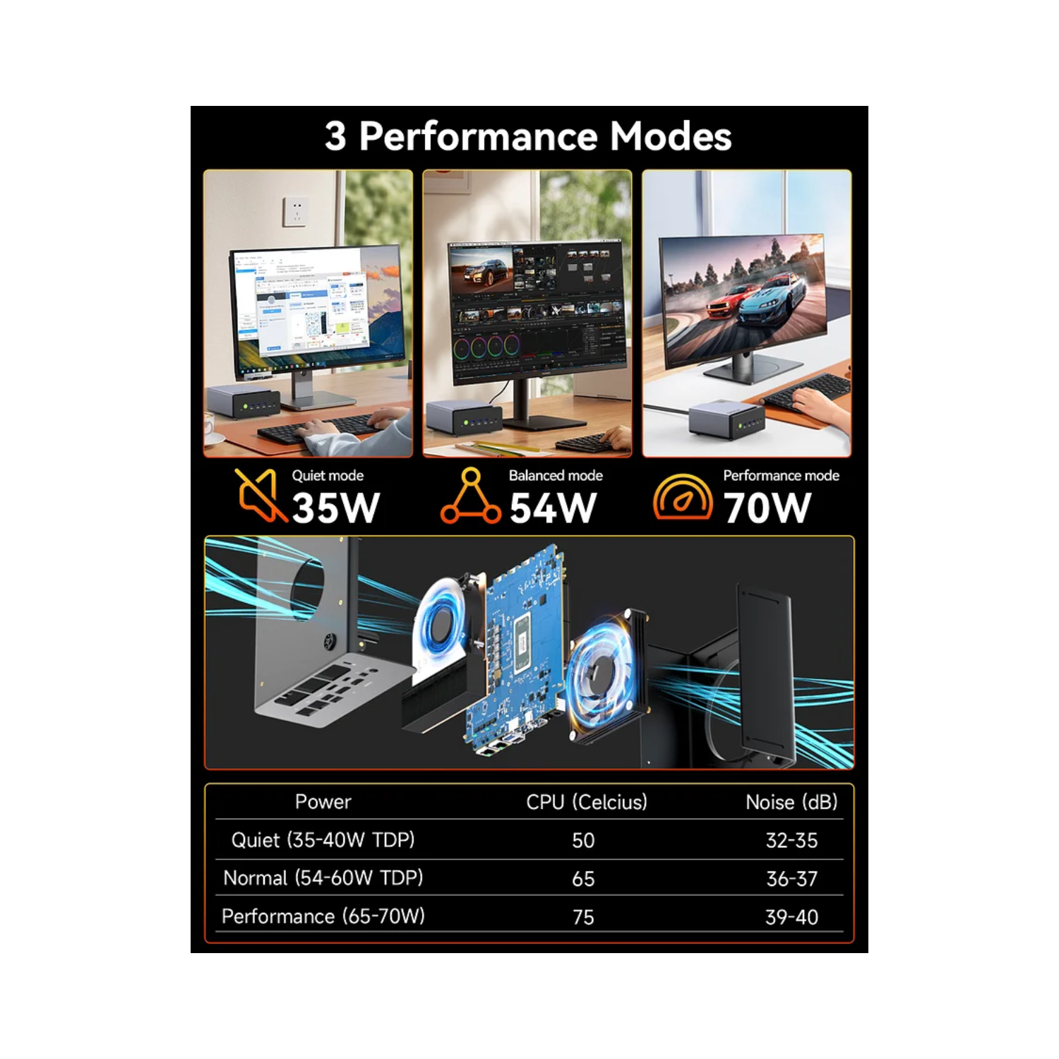 The GMKTec NucBox K12 combines performance with style in a compact, modern desktop form factor. Its small footprint makes it ideal for home offices, studios, or workspaces with limited room, while still offering all the power of a full-sized desktop. Despite its size, it’s designed for optimal airflow and quiet operation.