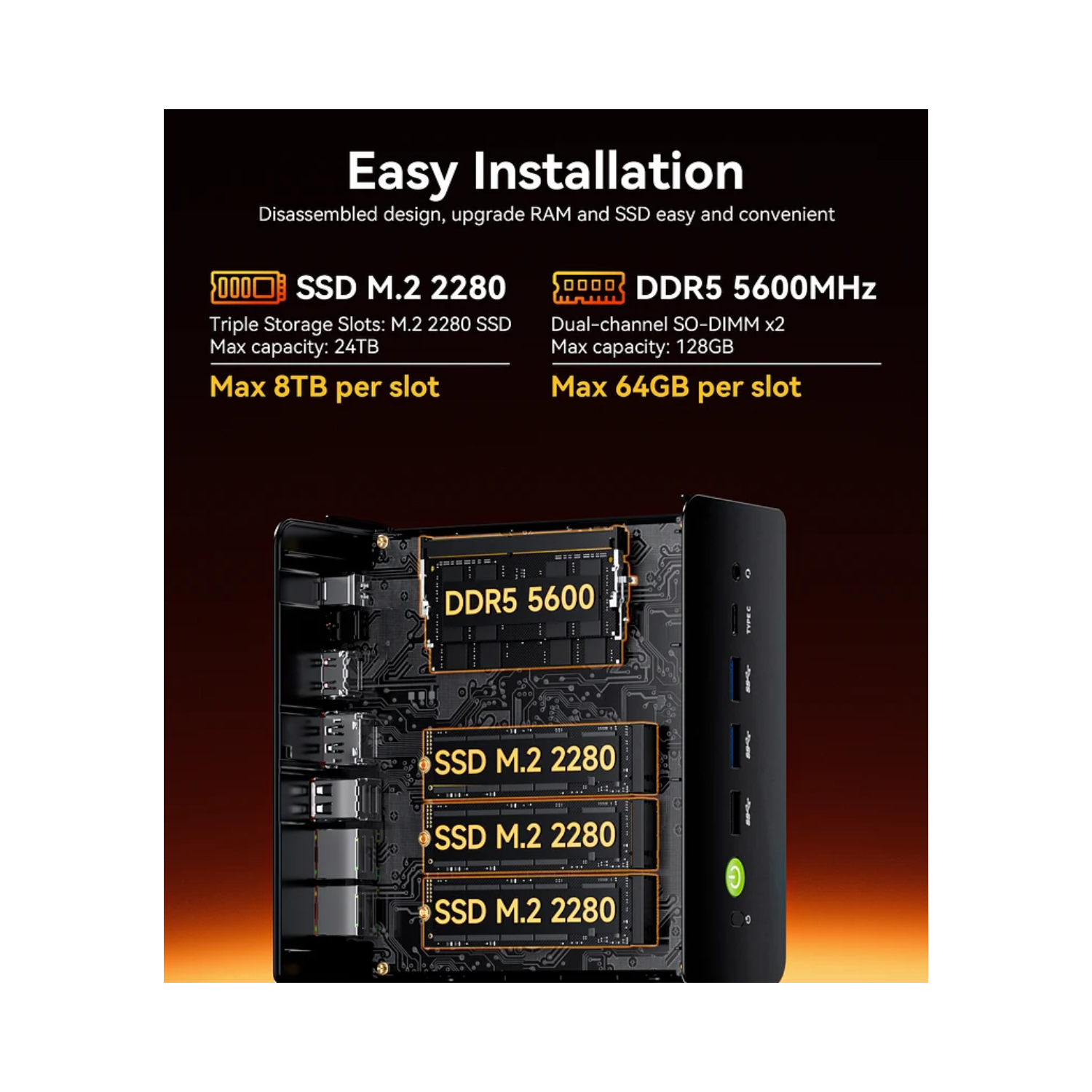Never slow down with 32GB of high-speed RAM. The GMK-K12-01 is engineered to handle multiple applications running simultaneously without lag. Switch between spreadsheets, creative software, and browser tabs effortlessly, making it perfect for professionals, students, and power users who require efficiency and reliability.