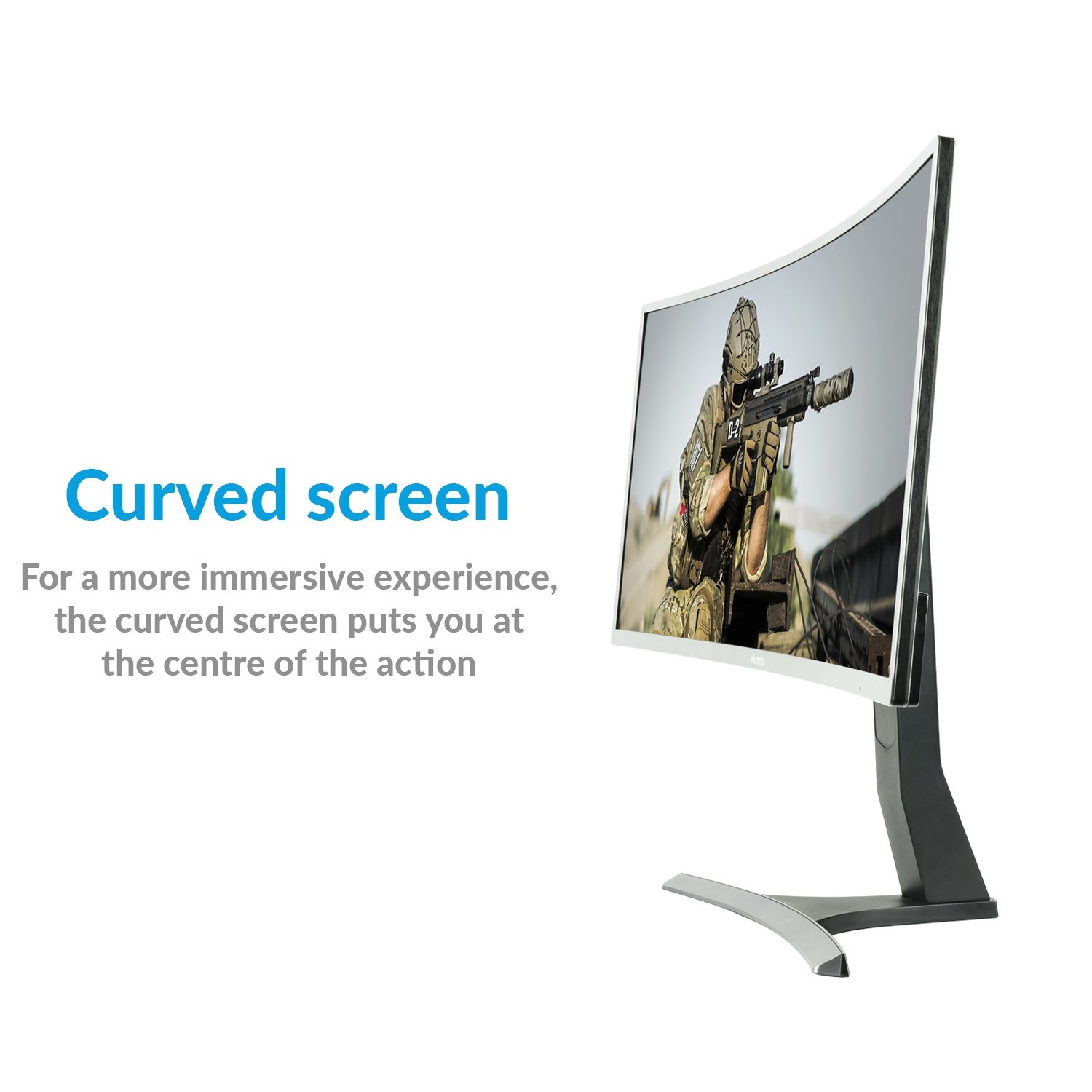 - The curved screen helps to create a more comfortable and natural experience
