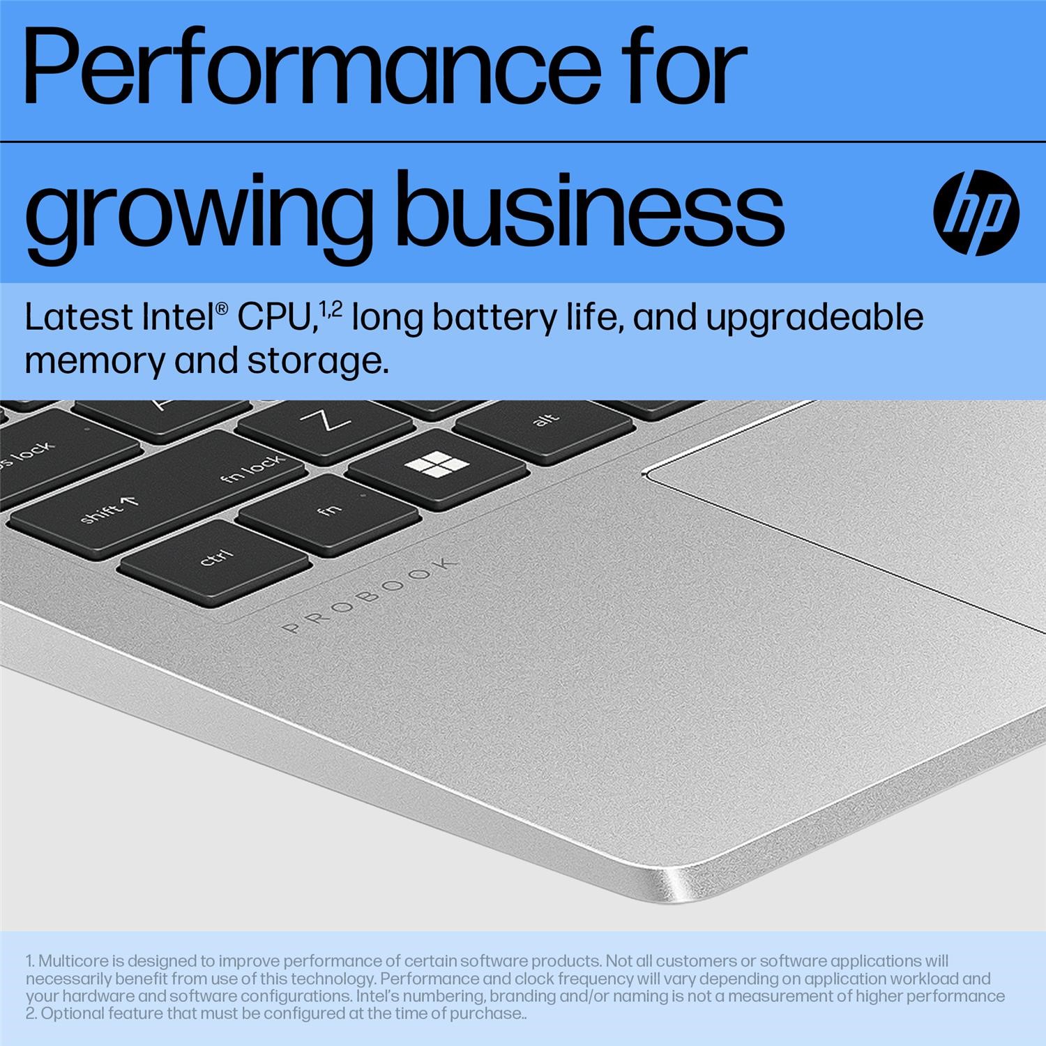<b>Essential, commercial-grade features</b><br>The HP ProBook 450 15-inch laptop provides growing businesses with the commercial-grade performance, multi-layered endpoint security, and durability in an easily upgradeable design. Powered by the latest Intel processor<sup>[2]</sup> and long battery life, this feature-rich PC is well-equipped for long-term productivity and helps enable hybrid work.