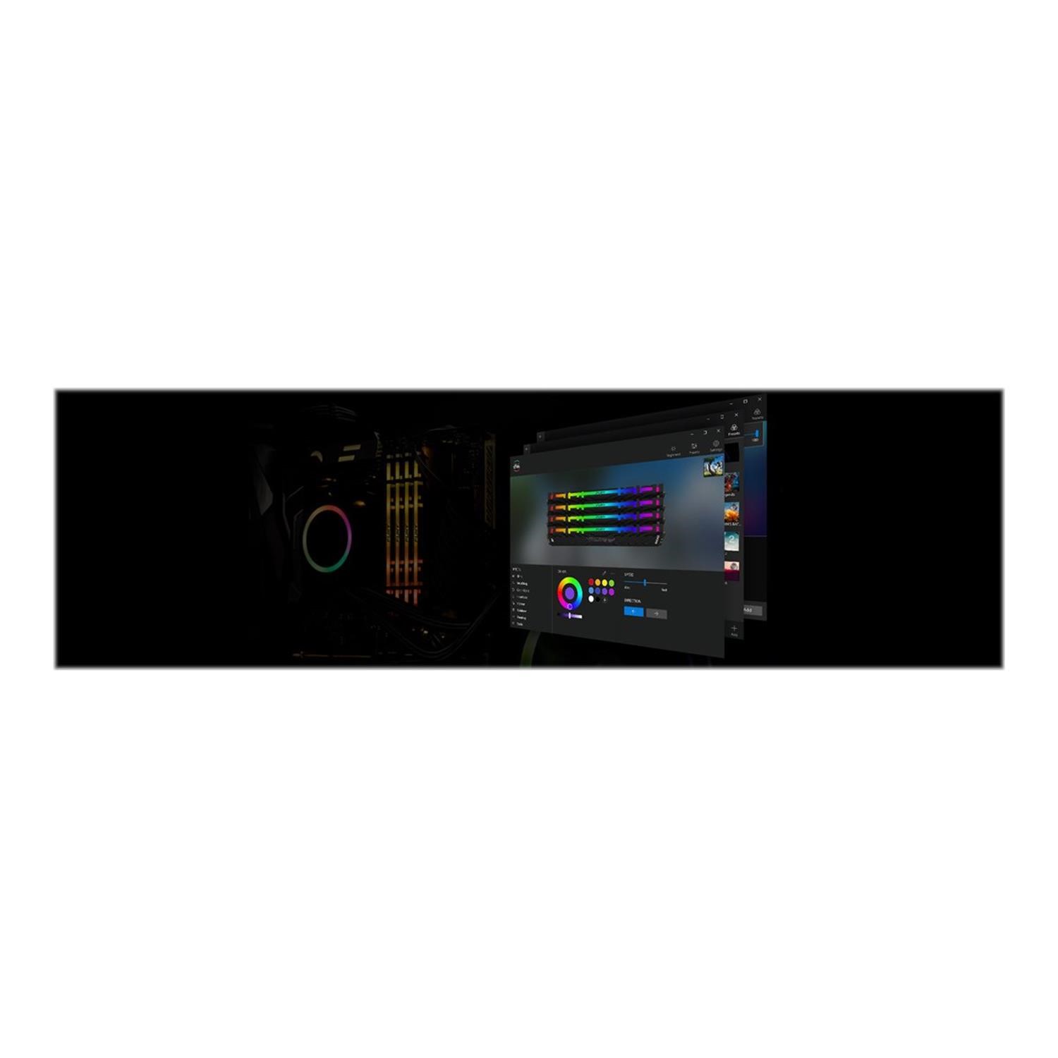Ultra-fast FURY Renegade DDR4 RGB is the perfect upgrade for the gamer who wants cutting-edge performance and brilliant RGB style in their AMD- or Intel-based system. The dynamic RGB lighting effects utilize Kingston FURY's patented Infrared Sync Technology to provide smooth, synchronized lighting effects. Crank up your frame rate, improve your broadcasts and make highlight reel clipping a breeze thanks to high speeds. The aggressive, stylish black heat spreader and matching black PCB will allow you to beat the heat and strike fear into the hearts of your foes. Renegade DDR4 RGB is Intel XMP certified with profiles optimized for Intel's chipsets - just select the hand-tuned profile in your BIOS and you're set.