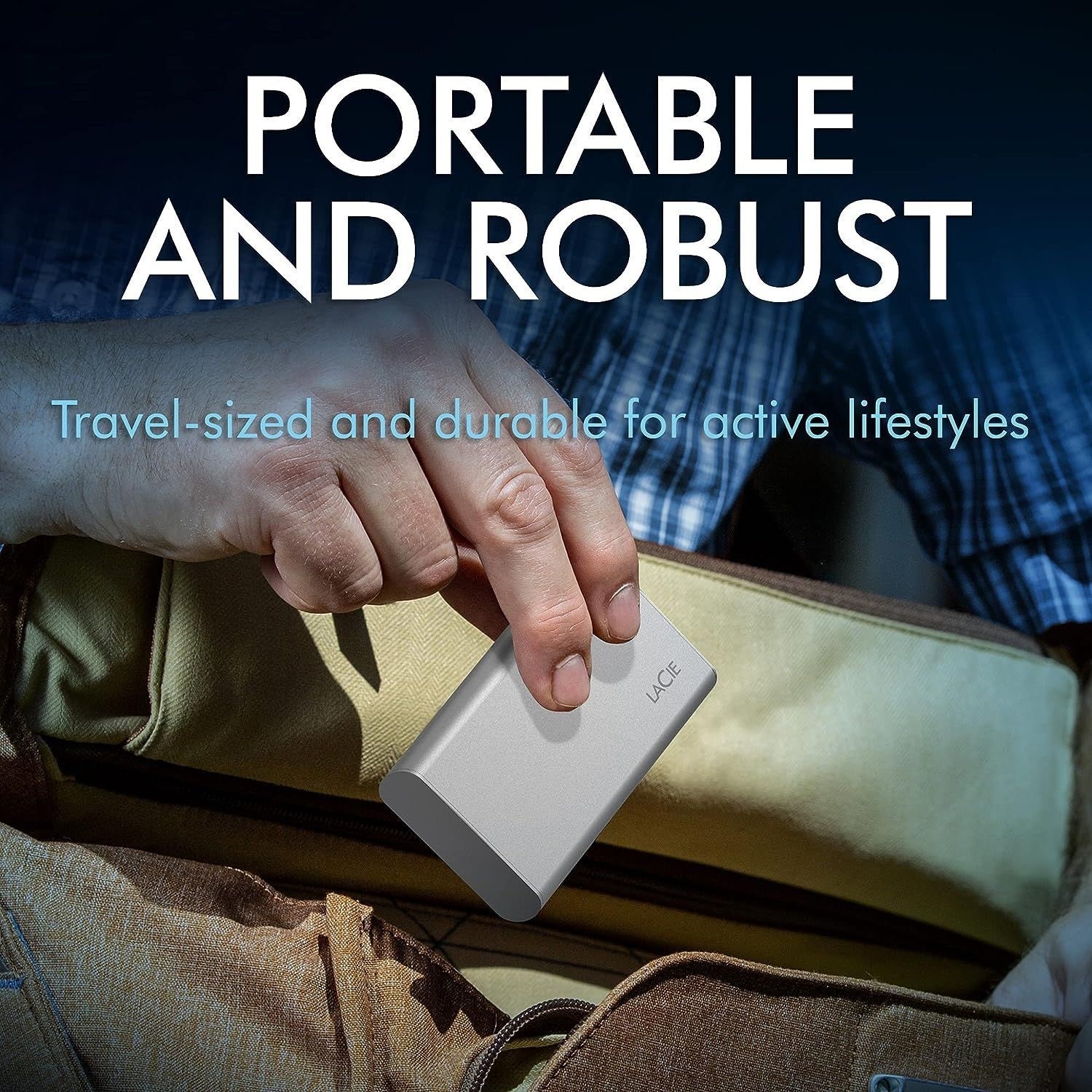 Accelerate productivity and score some downtime with LaCie Mobile SSD Secure featuring password activated hardware encryption. Quick file transfers with up to 1,050 MB/s read and 1,000 MB/s write speeds. iPad USB-C connectivity provides easy backups — freeing up device space, plus up to 2 TB capacity and simple plug-n-play USB-C Windows and Mac compatibility keep files handy. Travel-sized and styled right, work seamlessly from the drive — wherever you are.