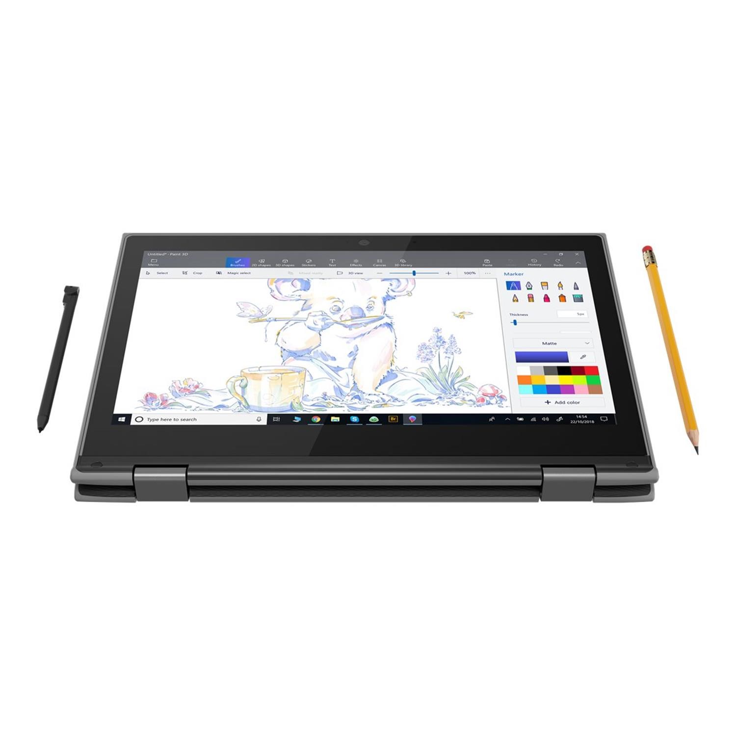 With powerful processing, a 360-degree hinge that accommodates 4 learning modes, and Pencil Touch technology, Lenovo 300e (2nd Gen) 2-in-1 laptop delivers a premium classroom experience. Factor in durability features like a sealed keyboard, mechanically anchored keys, and drop-resistance, and this convertible is sure to earn the grade.