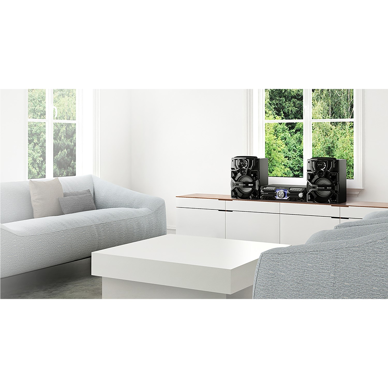 Get the party started. Bass is fired from the Panasonic SC-AKX710E-K Bluetooth Megasound Party Hi-Fi System with such power that you can feel it. The Super Woofer ensures that no resonance sounds are lost, so the music sounds crisp and clear even as it shakes the air with killer bass lines.