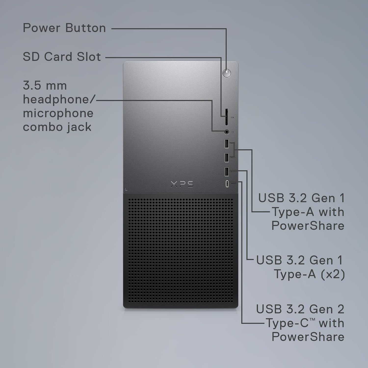 The XPS Desktop was spaciously designed to maximize airflow and reduce noise. Cool air travels through the tower's large chassis swiftly and quietly.