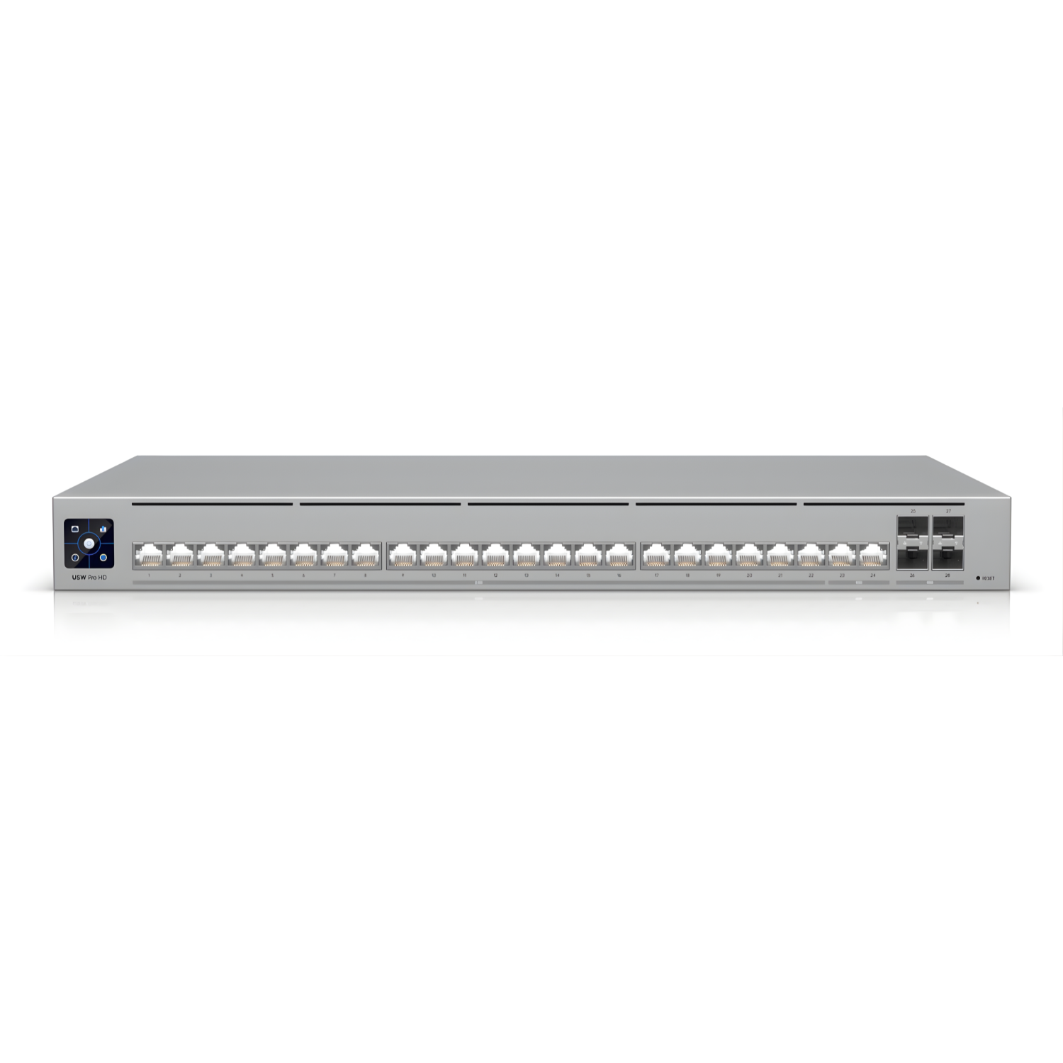 The Ubiquiti USW-Pro-HD-24 UniFi 24-Port L3 Managed 2.5GbE Access Switch is a professional-grade, Layer 3 Etherlighting switch with two (2) 10 GbE ports, twenty-two (22) 2.5 GbE ports, and four (4) 10G SFP+ ports.