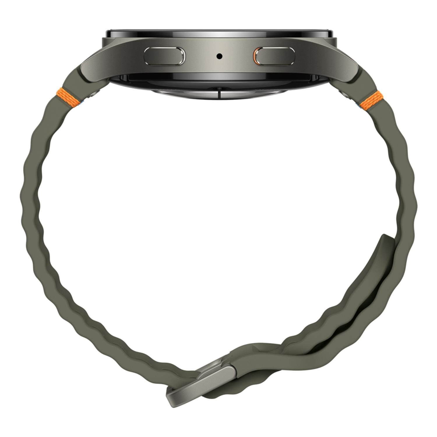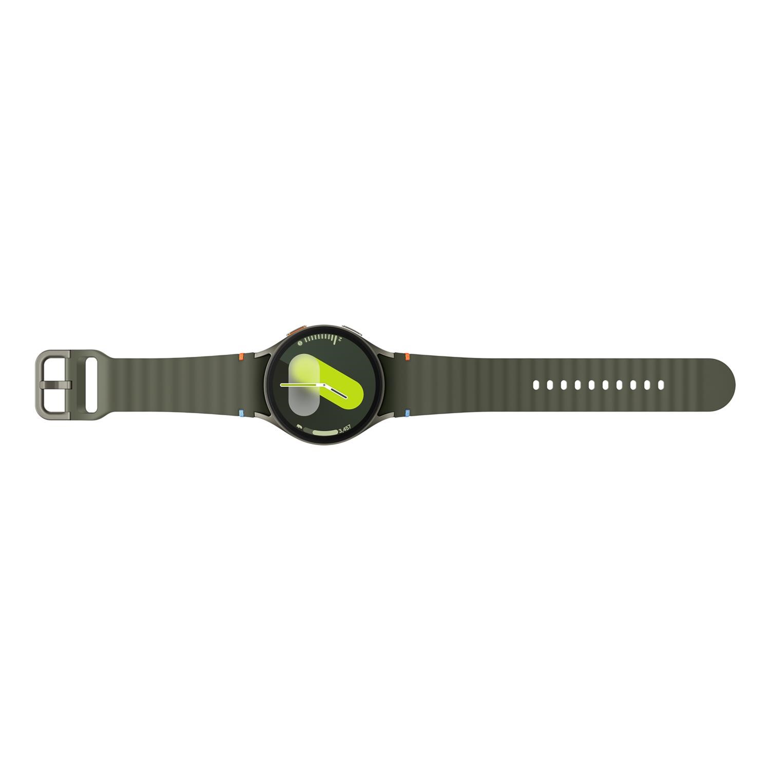 Elevate your style with the Galaxy Watch7. A floating glass design and colourful stitching points add a touch of elegance to your wrist, ripples on the band show you're ready for workouts. The Watch is available in Small and Large with three colour options: Green, Silver and Cream.