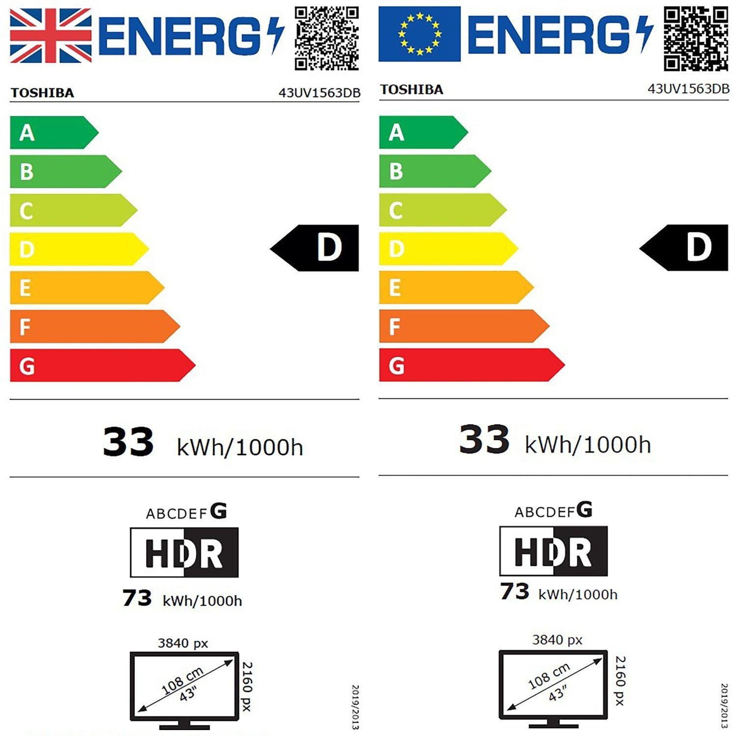 Toshiba 43UV1563DB 43" 4K Smart LED TV with Dolby Vision & Audio